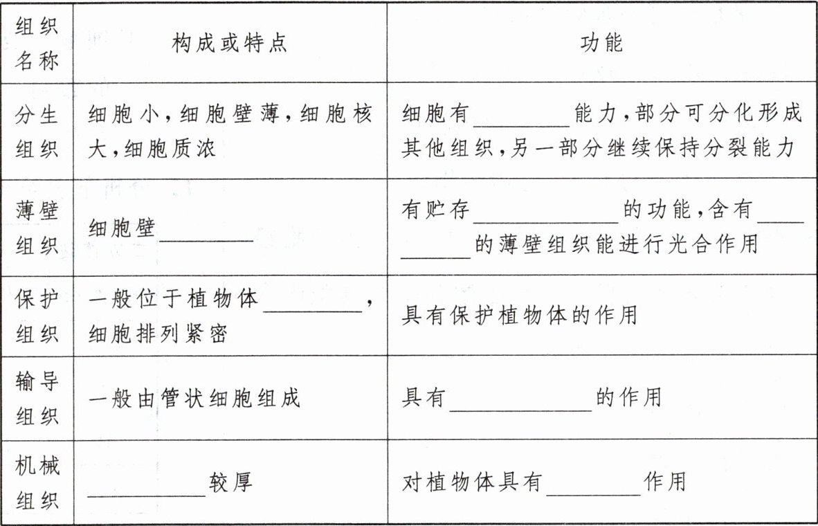 4.分裂 较薄 营养物质 叶绿体 表面 运输物质 细胞壁 支持