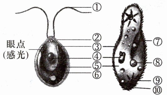 7. 如图是两种单细胞生物衣藻和草履虫的结构示意图,请据图回答问题。