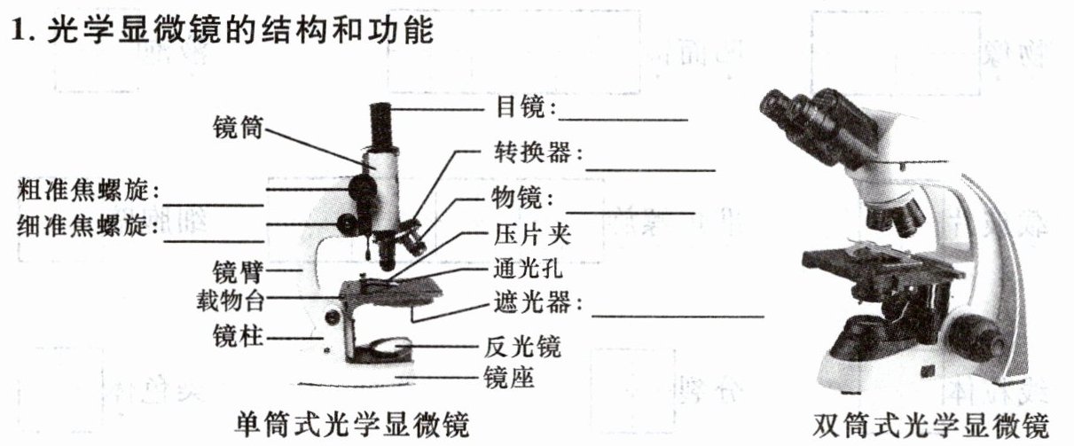 2.较低 物镜 反光镜 目镜 载物台 压片夹 通光孔 物镜 目镜 粗准焦螺旋 细准焦螺旋