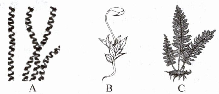 (填字母)。(2) 生活在阴湿环境中,依靠茎、叶吸收水和营养物质的是