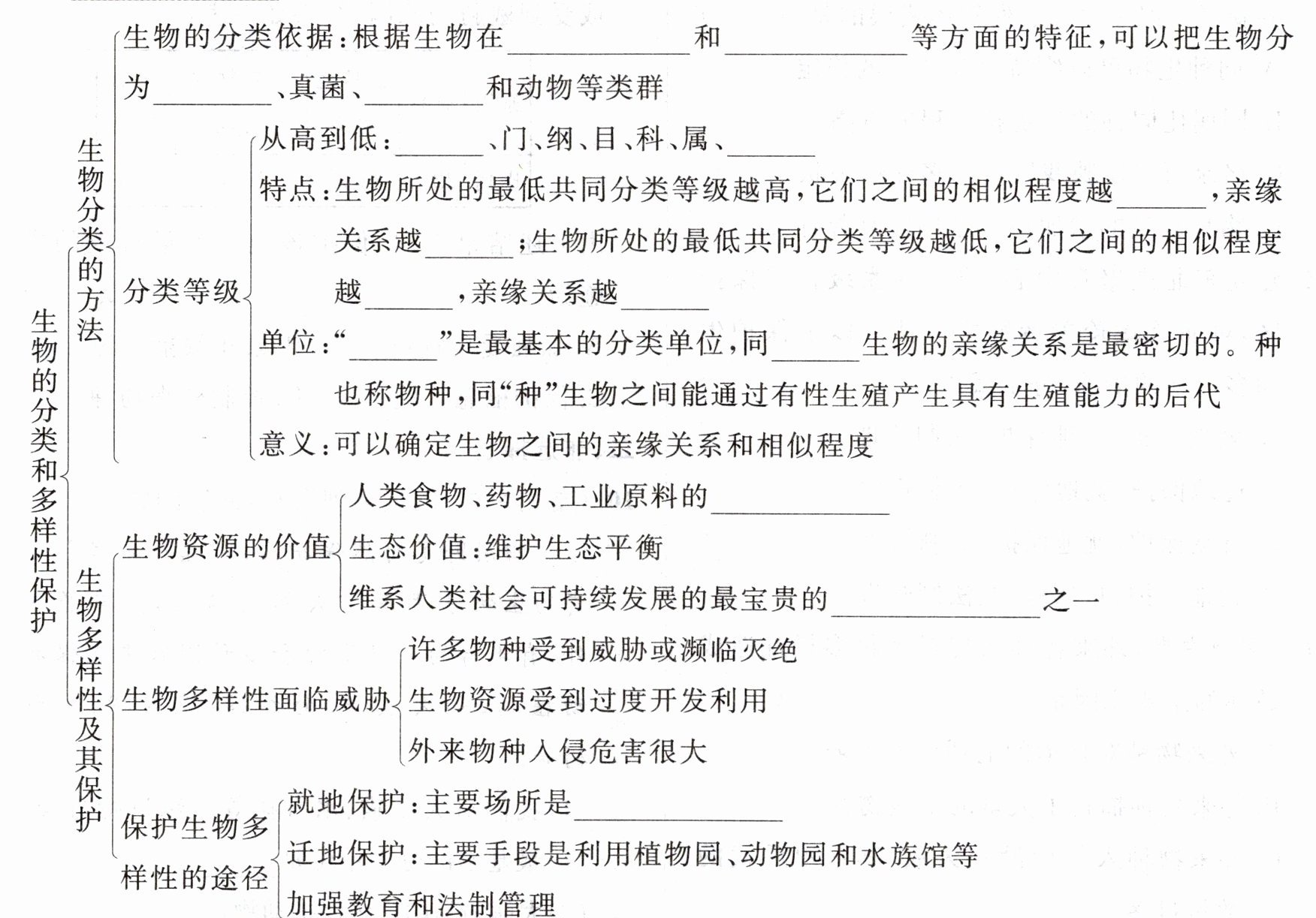 形态结构 生理功能 细菌 植物 界 种 低 远 高 近 种 种 重要来源 基础性资源 自然保护区