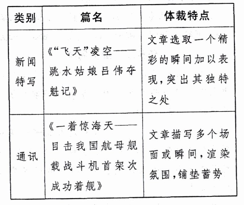 11. 下面是小语同学对语文教材新闻单元相关文章的梳理。你认为选文可以归为新闻体裁的哪一类型?请根据选文内容简述理由。(4 分)