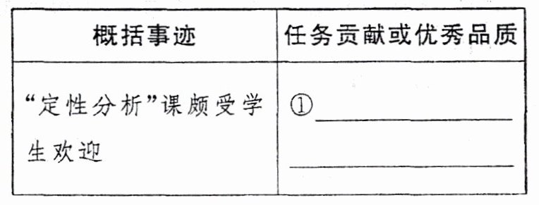8.①教学能力强,讲课魅力独特 ②购买软木塞都要亲自去一个一个地挑选 ③坚忍不拔,敬业奉献,不畏艰苦 ④长期为大学一年级学生上课 9.开篇点题,引出文章的主人公邱宗岳教授(1分);“不得不”强调了邱宗岳在南开大学化学系中的重要地位,激发读者的阅读兴趣,引出下文对邱宗岳教授的介绍(2分)。 10.运用比喻的修辞手法(1分),把经邱宗岳讲解的复杂的概念比作“清水”,写出了邱宗岳讲课语言简练、条理清楚、重点突出、层次分明的特点 (1分),生动形象地体现邱宗岳教学水平高超,体现出作者对其高度的赞美之情(1分)。 11.【示例】邱宗岳先生是一位坚守教学一线、学术造诣深厚、敬业奉献、勤俭节约、重视基础教学,同时为南开大学化学系的发展作出突出贡献的伟大教育家。(3分,结合人物形象分析,言之有理即可)