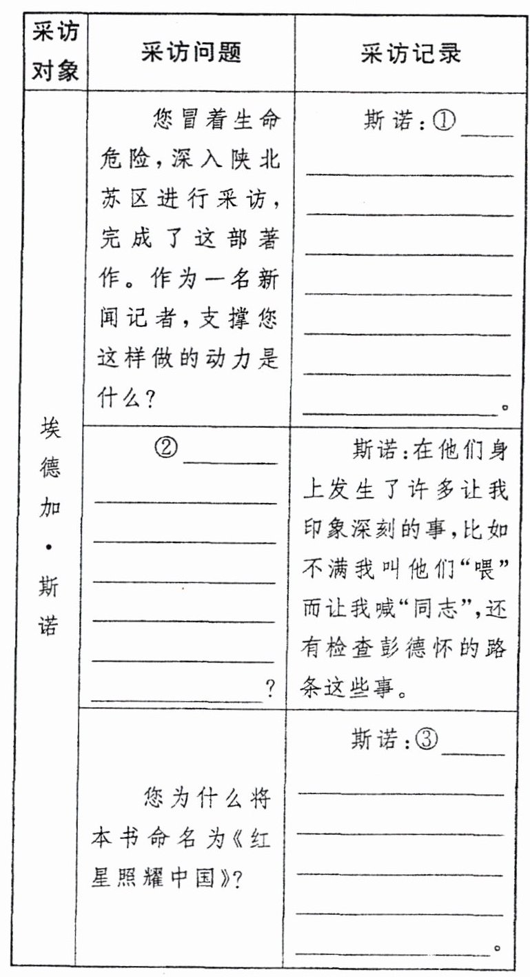 2. 为了纪念《红星照耀中国》问世 86 周年,班级进行模拟采访,请你参与其中。