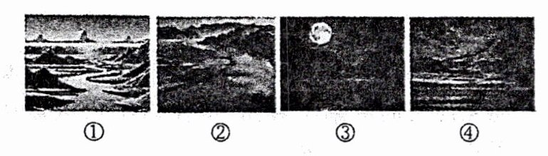5. 《渡荆门送别》中间两联描写了诗人游历途中的自然风光,请仿照示例,为其余两幅图命名。