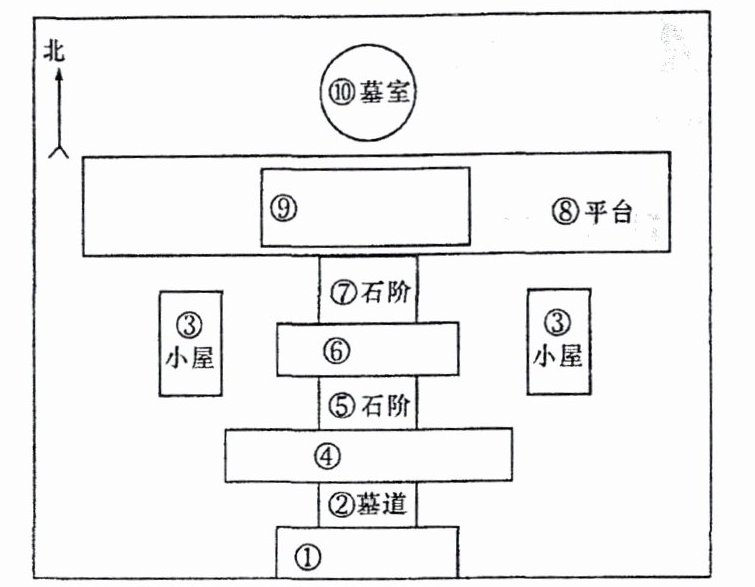 ③陵园的总平面布局,大致可分为南、北两区。南区包括入口的石牌坊和缓长的墓道。北区包括陵门、碑亭、石阶、大平台、祭堂、墓室等。