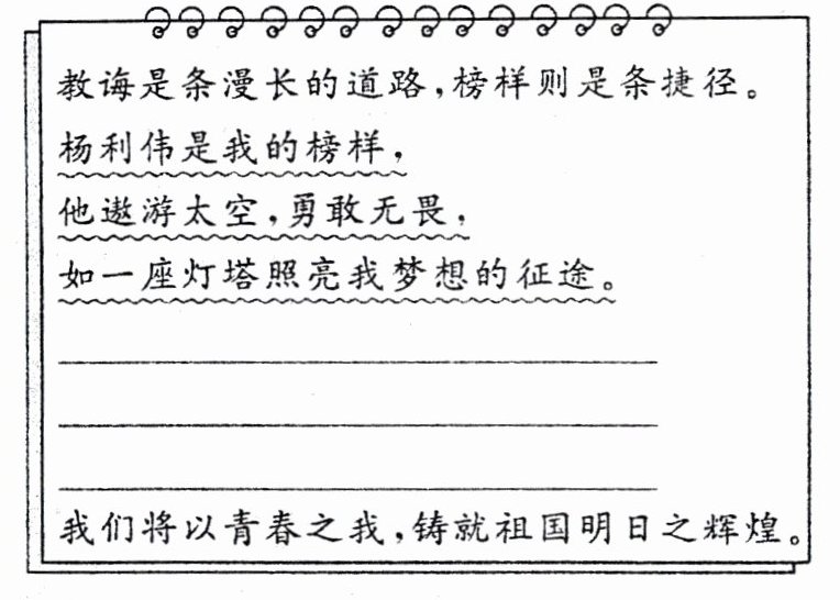 7. 活动最后,同学们在“青春模样”留言板上纷纷留言,请你仿照画波浪线的语句,以本课课文内容为素材,完成这首小诗。