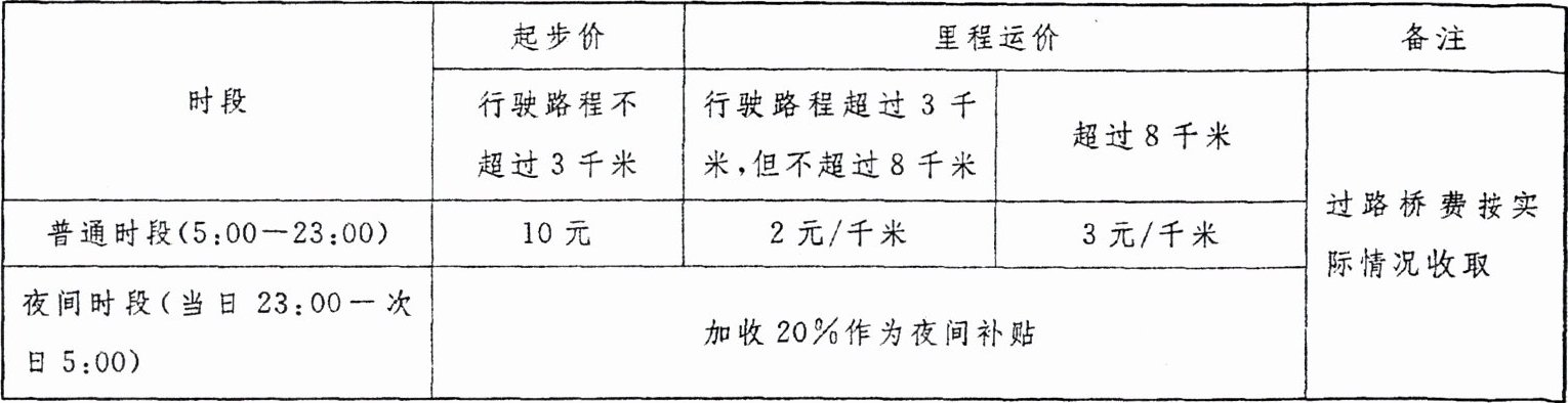 1. 为降低碳排放,积极推广绿色生活与绿色出行方式,某出租公司制定了新的出租车收费标准,具体内容如下表所示: