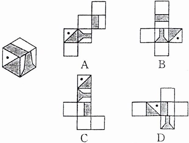 6. (2024·江西)如图,这是 4×3 的正方形网格,选择其中一个空白小正方形,则能与阴影部分组成正方体展开图的选法有()