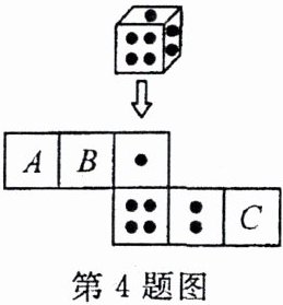 4. 已知一个骰子相对两面的点数之和为 7,它的展开图如图所示,则下列判断正确的是( )