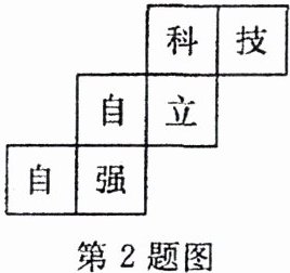 2. (2024·宿迁)我们能不能如期全面建成社会主义现代化强国,关键看科技自立自强.将“科技、自立、自强”六个字分别写在某正方体的表面上,如图所示的是它的一种表面展开图,在原正方体中,与“强”字所在面相对面上的汉字是()