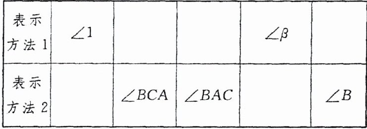 3. 将下图中的角用不同方法表示出来,并填写下表: