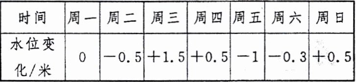 15. 下表是某水库一周内的水位变化情况,“+”表示水位比前一天上升,“-”表示水位比前一天下降,该水库的警戒水位是 32 米,已知上周周日的水位是 30 米.