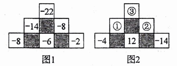 13. 石家庄外国语校本经典题 从图 1 中找规律,并按此规律,在图 2 的空格里分别填上合适的数,则①为