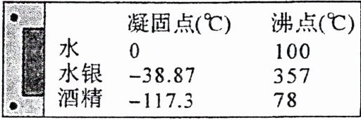 9. 仔细观察资料卡中的信息,求水银的凝固点比酒精的凝固点高多少摄氏度.