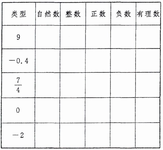 6. 判断表中各数分别是什么数,在相应的空格里打上“√”.