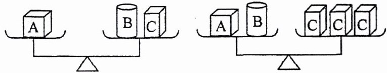 10. 如图,天平两边盘中标有相同字母的物体的质量相同. 若两架天平保持平衡,1 个砝码 A 与 $n$ 个砝码 C 的质量相等,则 $n$ 的值为 (