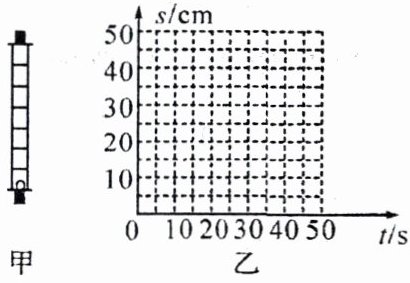 。(2) 小明记录气泡上升一段路程后的实验数据如表所示,请你在图乙的坐标系中画出 $ s - t $ 图像。