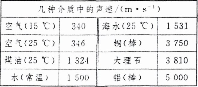 中传播的速度最慢。(填“固体”“液体”或“气体”)(3)由表格可知,声速的大小受