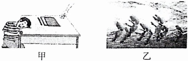 传入学生的耳中;如图甲所示,将耳朵贴在桌面上,用手指轻敲桌面,我们能听到清晰的敲击声,这个现象表明固体
