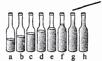8. 如图是八个相同的玻璃瓶,分别装有高度不同的水。用筷子分别敲击瓶子,下列说法正确的是(