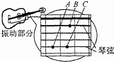 。(5)如图所示,请你判断在琴弦松紧程度相同的情况下,分别按住A点、B点、C点后拨动琴弦,发出的声音音调最高时按住的是
