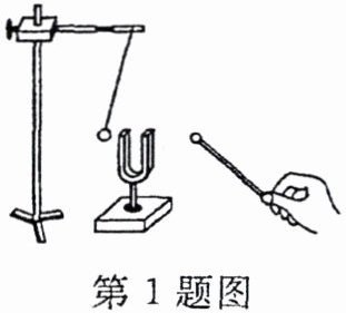1. 如图所示,用细线拴着硬泡沫塑料小球,悬挂在铁架台上,用橡皮槌轻轻敲击音叉,音叉