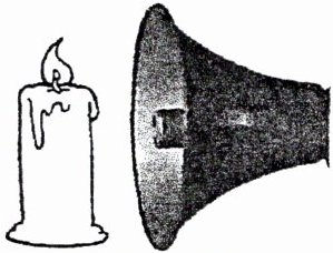 3. 如图所示,将一支点燃的蜡烛放在扬声器的前方,当扬声器发出较强的声音时,可以看到烛焰随着音乐的节奏晃动。扬声器的纸盆由于