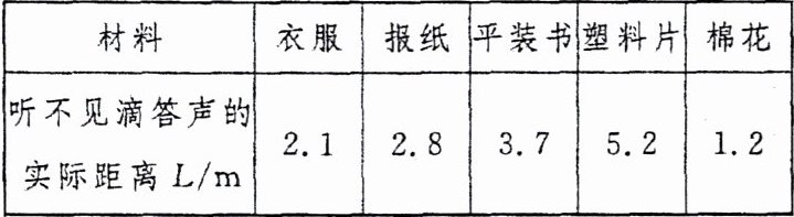 (2) 把闹钟放到一个鞋盒里,将衣服盖在鞋盒四周,然后逐渐远离盒子,直到听不见滴答声,用卷尺量出此时人离盒子的距离,并记下这个距离L。