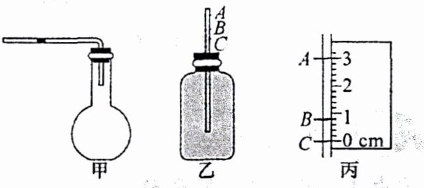 (3)乙温度计为液体温度计,瓶中装有一定质量红色的水。为了给此温度计定标,将该温度计分别放人10℃和40℃的水中,待液面静止后,标出红色液柱到达的位置记作A和C,则10℃对应的刻度线是