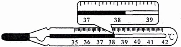 甩过的体温计的读数是37.7℃,用两支这样的体温计给两个病人测体温。如果病人的体温分别是37.5℃和38.4℃,则两支体温计的读数将分别是37.7