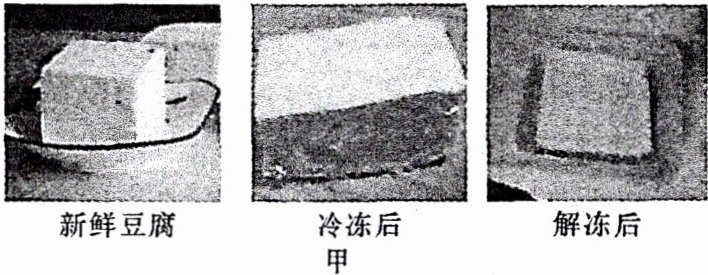 (1)小芳小组制作“冻豆腐”,制作过程如图甲所示,他们发现,新鲜豆腐冷冻后体积变大,原因是豆腐里面的水