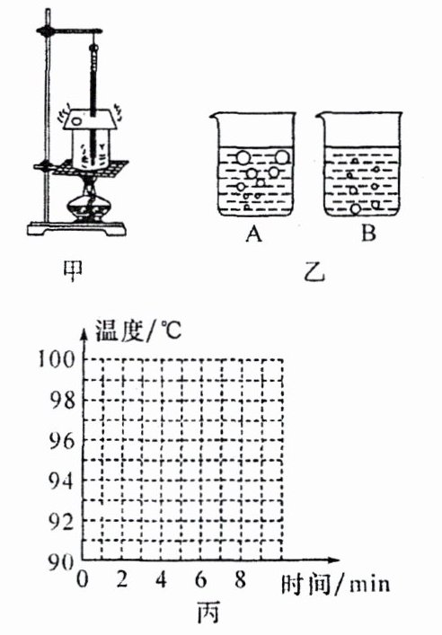 (填“A”或“B”)是水沸腾后的情况。(3)根据实验数据在图丙中描点画出温度随时间变化的图像。