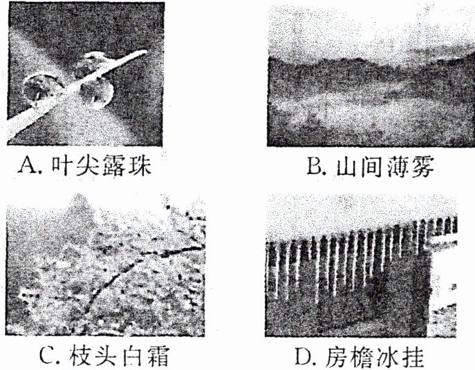 8. (2024·临沂)2023年冬,凭借冰雪资源火爆出圈的哈尔滨吸引了众多的南方“小土豆”前来游玩,千姿百态的雾凇成为“小土豆”们必看的绝世美景。下列自然现象中,与雾凇形成时的物态变化相同的是(
