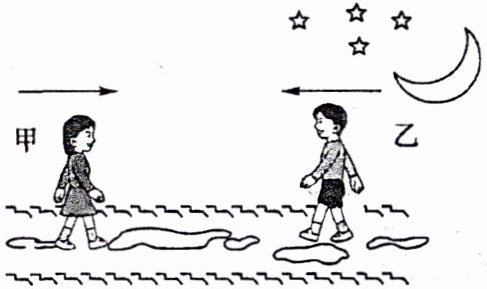 (填“镜面反射”或“漫反射”)。如图所示,人在月光下行走,为了不踩到地上的积水,甲同学迎着月光走,应走暗