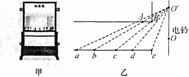 8. (2023·武汉)一块仪容镜如图甲所示,放在某学校走廊的 $ AB $ 处,仪容镜靠墙而立,镜面与墙壁平行,在另一面墙壁上的 $ O $ 处悬挂一个电铃,如图乙所示。小强同学沿着走廊的 $ ae $ 直线走动,若将人和电铃各自看作一个点,为了总能看到电铃通过仪容镜所成的像 $ O' $,则小强同学所在的区间是( )