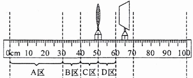 (2) 改变发光物体位置,使其位于25 cm刻度线处,移动光屏,发光物体在光屏上成清晰的______、______的实像,像成在______ cm刻度线和______ cm刻度线之间。