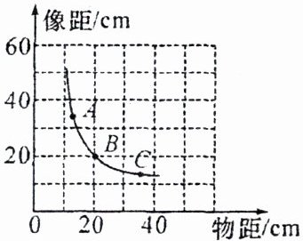 4. 在做“探究凸透镜成像的规律”实验时,实验小组所描绘的图像如图所示。图线中A、B、C三点分别与蜡烛在光具座上移动过程中的三个位置相对应。则下列说法正确的是(
