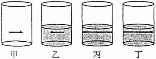 13. 北京五中校本经典题小明同学找来一个薄壁圆柱形玻璃杯,并将画有箭头的白纸靠在玻璃杯后,观察结果如图甲所示(白纸被玻璃杯遮住)。向杯中加水,使得水面高过箭头位置,透过玻璃杯观察纸上的“箭头”;将白纸逐渐远离杯子的过程中,观察到的情景依次是(