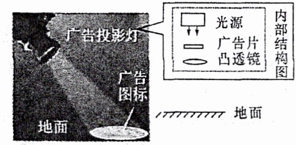10. 夜晚漫步在城市街道,地面上的广告投影引人注目,投影灯的内部结构如图所示,下列说法不正确的是(