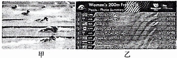 1. 如图所示,图甲为观众看到的游泳比赛现况,观众能判断此时谁游得更快是通过
