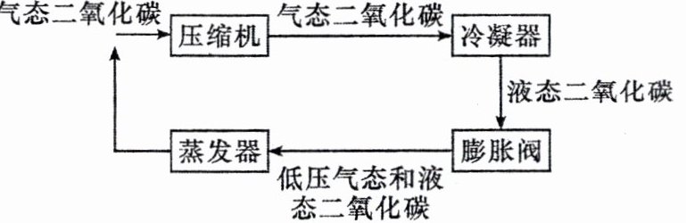 D.二氧化碳经过蒸发器时汽化,吸收热量