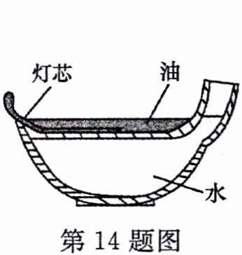 14. (2024·广东)如图是古代省油灯的示意图。它下层盛水,能减慢上层油的消耗。点灯后,水在升温的过程中(