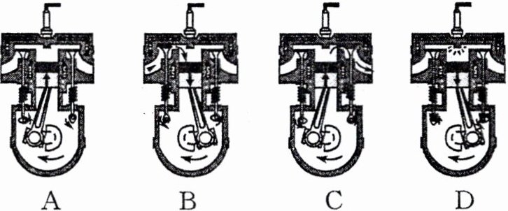 4. 如图是某台汽油机工作的四个冲程(顺序已打乱),请按一个工作循环的过程,将四个图重新排序:
