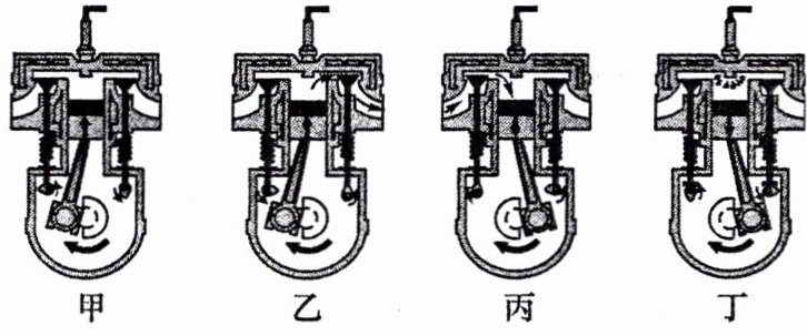 3. 如图所示为汽油机工作时各冲程的示意图,请按要求填空。