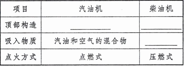 4. 将下表汽油机和柴油机的不同点填写完整。