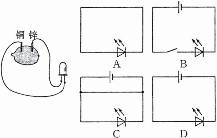 7. (2024·广西)如图是水果电池和发光二极管( )组成的电路。下列电路图中与其对应的是( )
