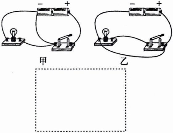 6. 【教材习题改编】如图,甲、乙电路中各有一根导线接错而使电源被短路,请把这根导线找出来,在上面画一个“×”,并在虚线框内画出正确的电路图。