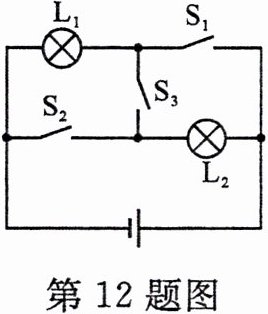 12. 如图所示电路中,要使小灯泡 $ L_1 $、$ L_2 $ 串联,必须闭合开关
