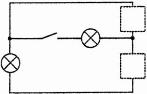 14. 如图所示,请在两个虚线框内填“电源”或“开关”的符号,使开关都闭合时,两灯组成并联电路。